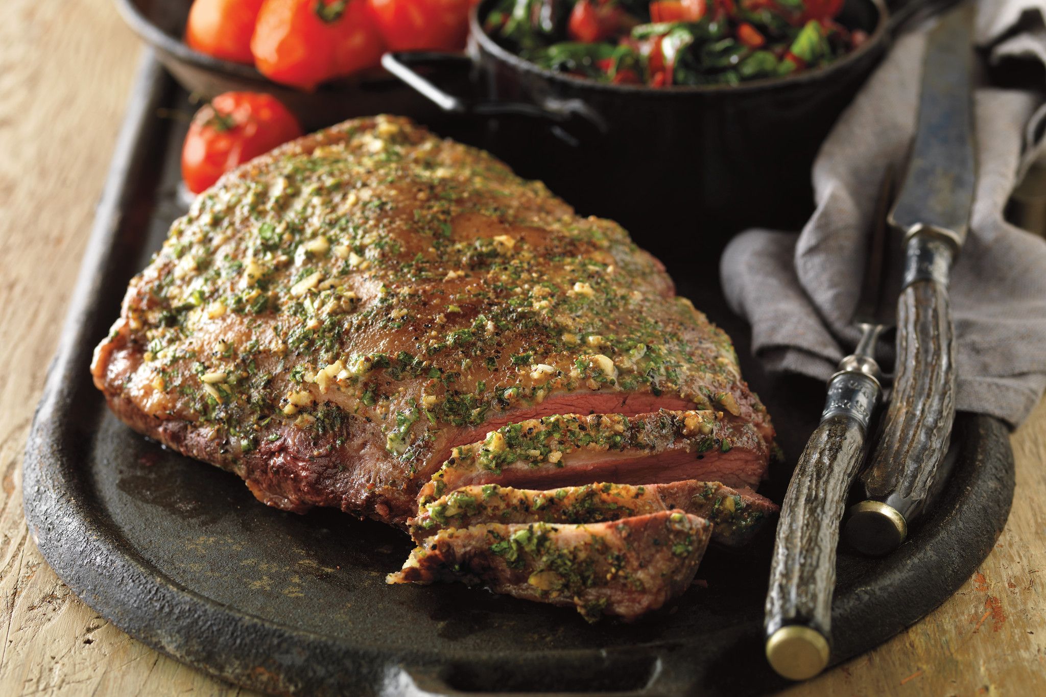 Mustard-Glazed Sirloin Roast with Sautéed Greens